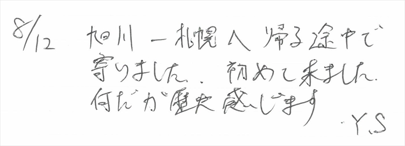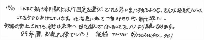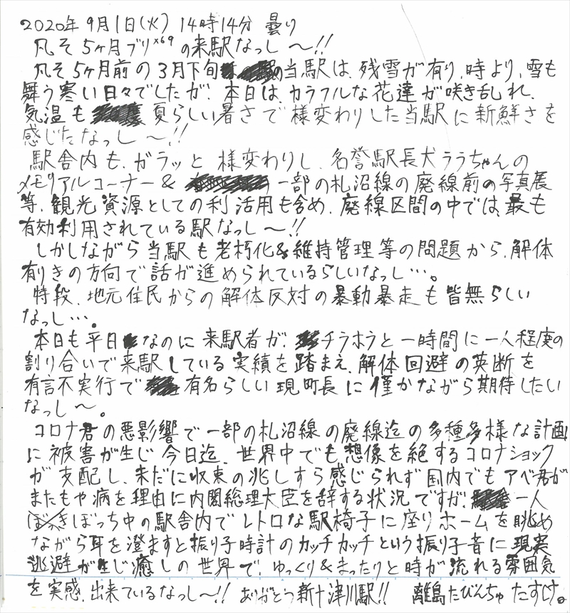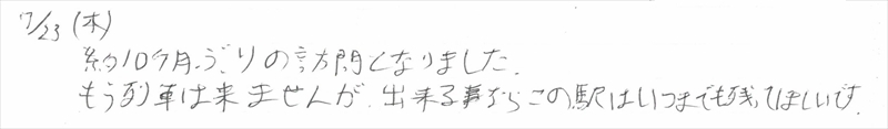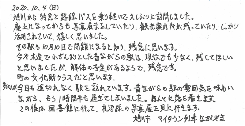 新十津川駅は廃線となり「新十津川駅ノート」の配置も終了しましたが、ホームページではしばらく公開します。